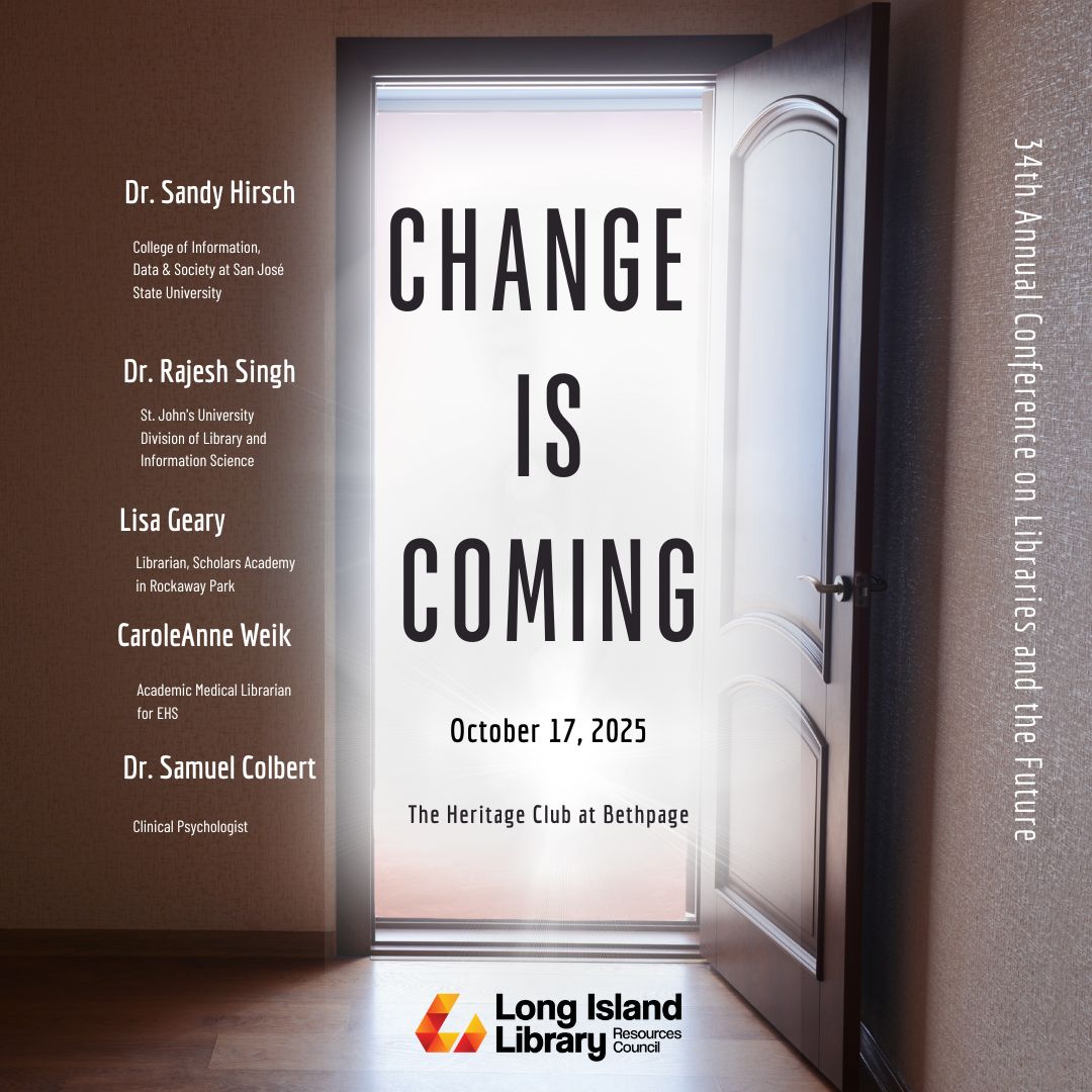 Registration is closed, if you are interested in attending the conference on Friday, please email Eliscia Cirrone at ecirrone@lilrc.org 34th Annual Conference on Libraries and the Future: